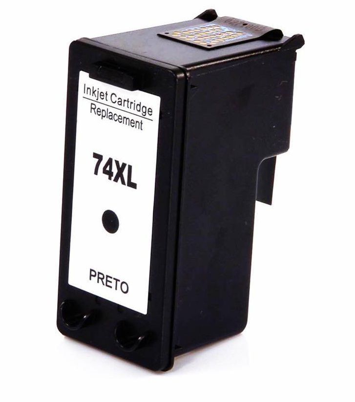 Cartucho de tinta compatível com HP 74XL, da marca Microjet, possui com 25ml de tinta preta em seu interior.